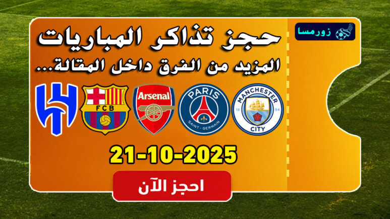 - إن لم يتوفر رابط لشراء التذاكر الآن، راجع صفحات النادي الرسمية أو تابع تحديثات الصفحة الرسمية للبطولة.